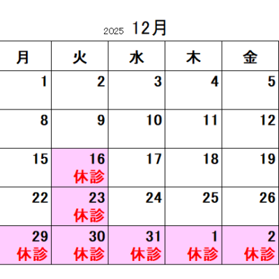 | 午後 | ◯ | 休 | ◯ | ◯ | ◯ | 休 | ||